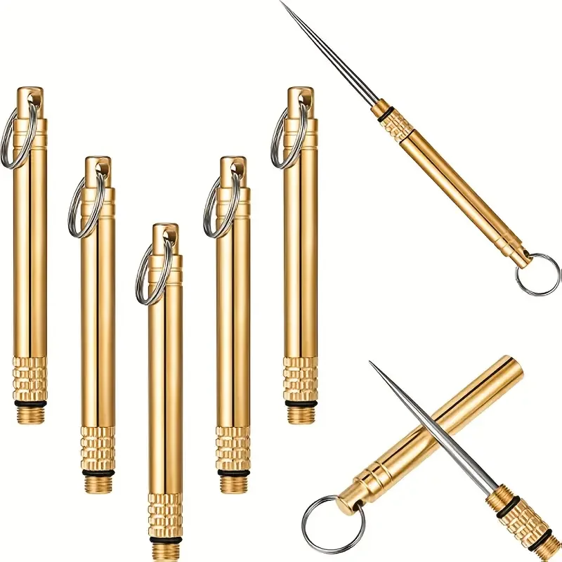 Outdoor Brass Toothpick EDC Portable Mini Pocket Toothpick Fruit Fork Camping Tool Toothpick Tube Is More Durable Than Floss  Read more