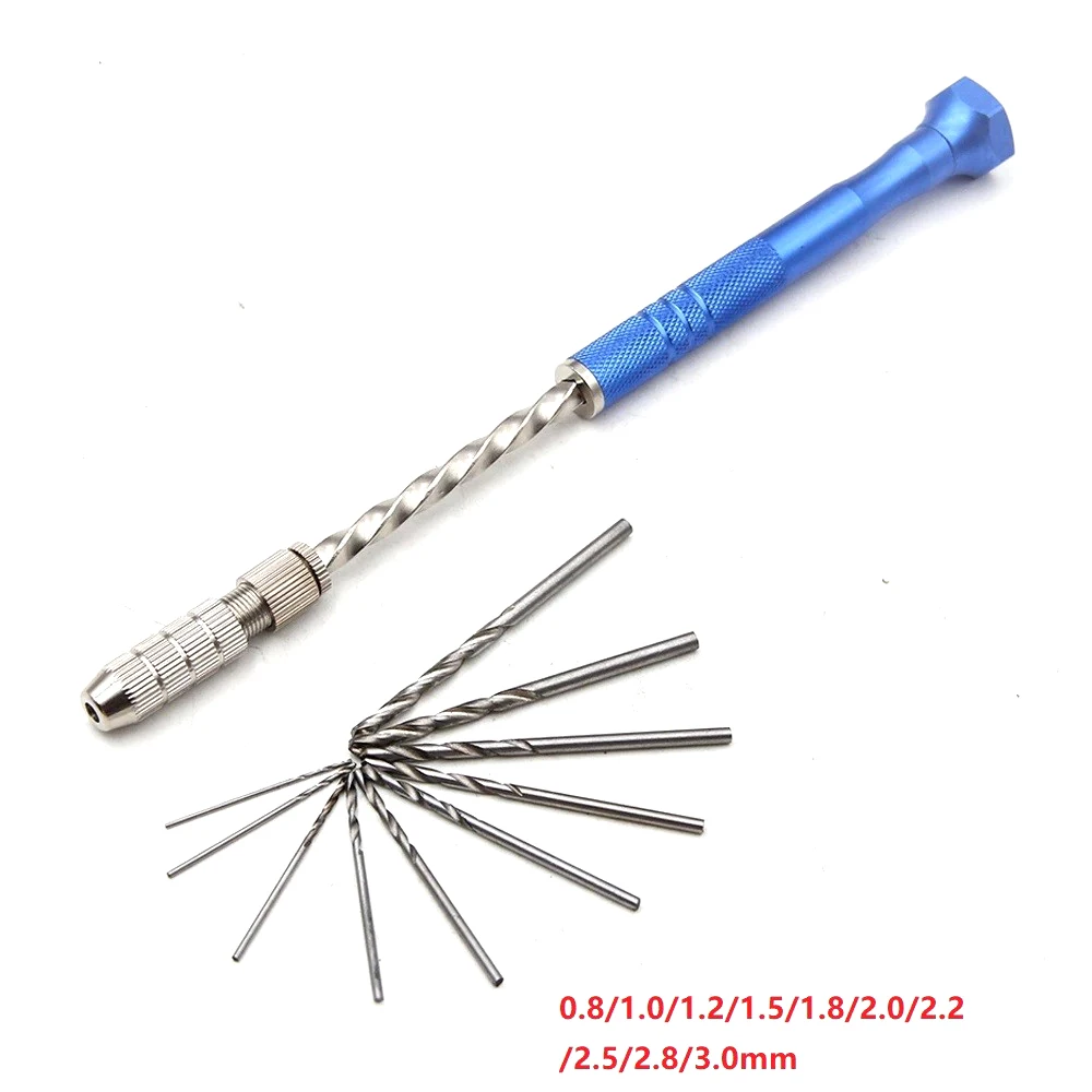 Blue Extended Semi-automatic 0.5-3mm Hand Twist Drill Amber Plastic Circuit Board Drilling Tool Twist Drill Set
