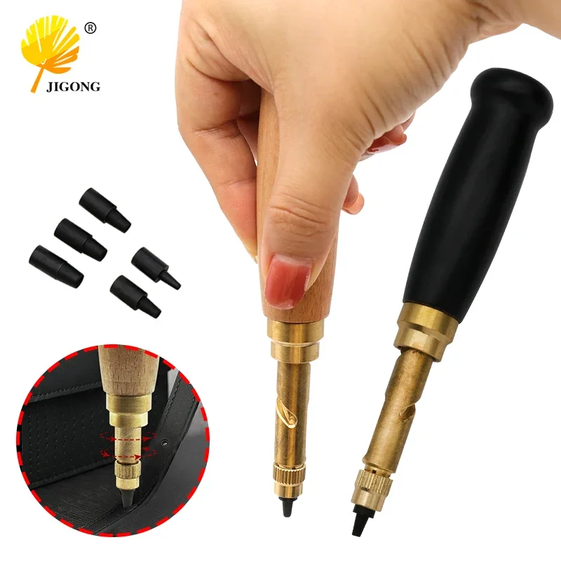 Automatic Belts Punch 6 Tips Leather Screw Hole Punch Drill 1.5/2.5/3.0/3.5/4mm Puncher Watch Craft Tool
