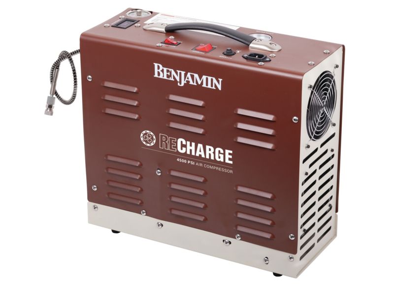 Crosman Benjamin Recharge Compressor Portable BHPAC. 8L) 110V with standard US 3 prong plug Automatic Pressure shutoff- stops at set pressure Automatic shut off after 30 minutes of continuous run time Air and water cooled Safety burst disk Fills a...  Read more