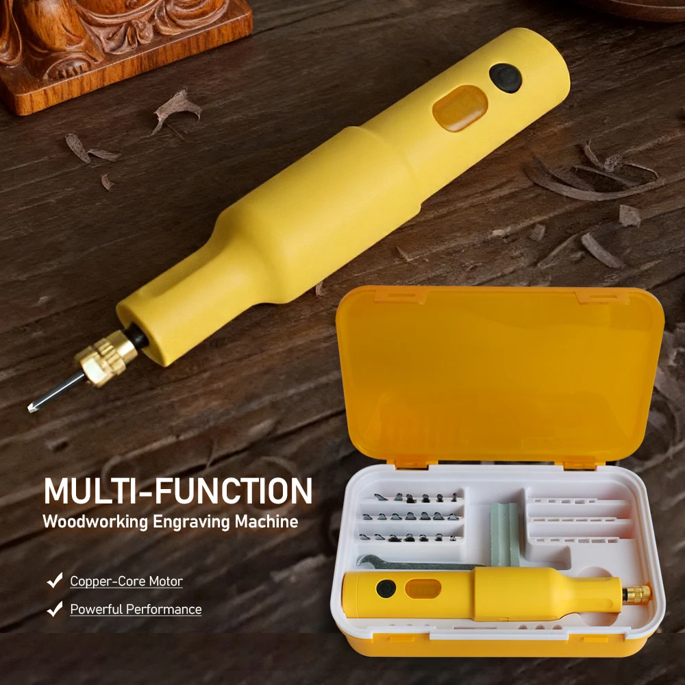 Electric Wood Carving Chisel Set 4.2V Cordless Portable Engraving Tool 20pcs Kit for DIY Craft, Woodworking, Sculpture, Beginner