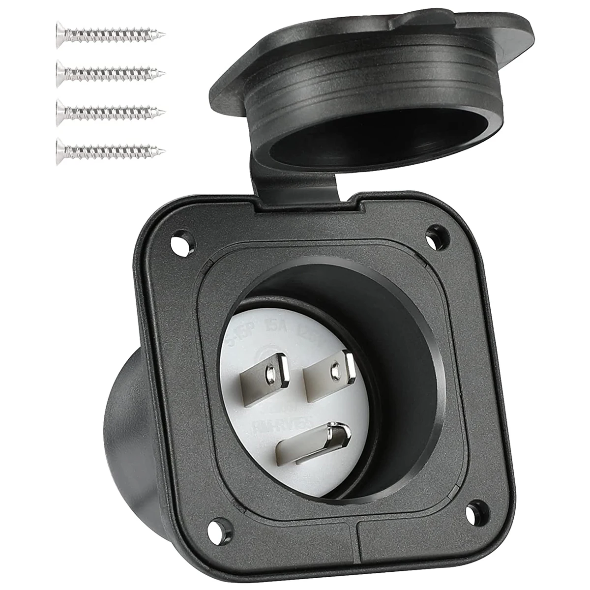 15 Amp Shore Power Inlet Plugs 125V Flange Inlet RV Power Outlet Socket with Waterproof and Dustproof Cover 5-15P RV Plugs Power