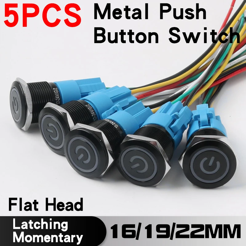 5PCS 16/19/22mm Metal Button Switch Black Shell Flat Head Waterproof LED Momentary Reset Latching Button Switch 12V 24V 220V  Read more