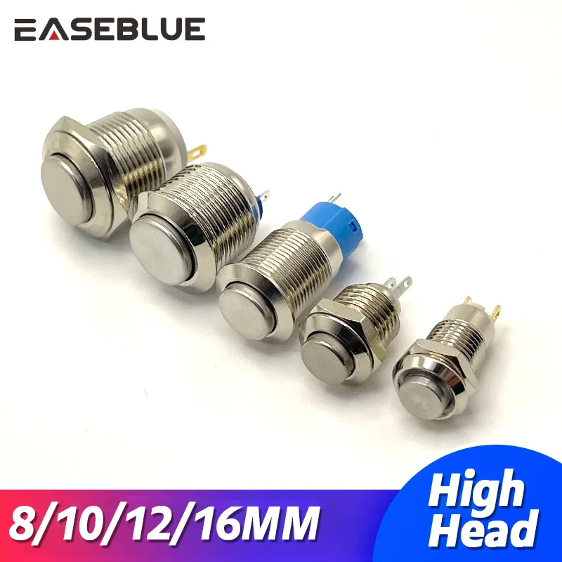 Metal Push Button Switch 12/16/19/22mm No LED Start Stop On/Off Waterproof Momentary Latching Power SwitchHigh Head Flat Head