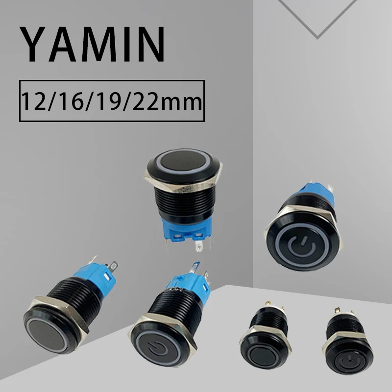 12/16/19/22mm Momentary Reset Latching Lock Black Shell Metal Push Button Switch Waterproof LED Light Flat Round 6V 12V 220V  Read more