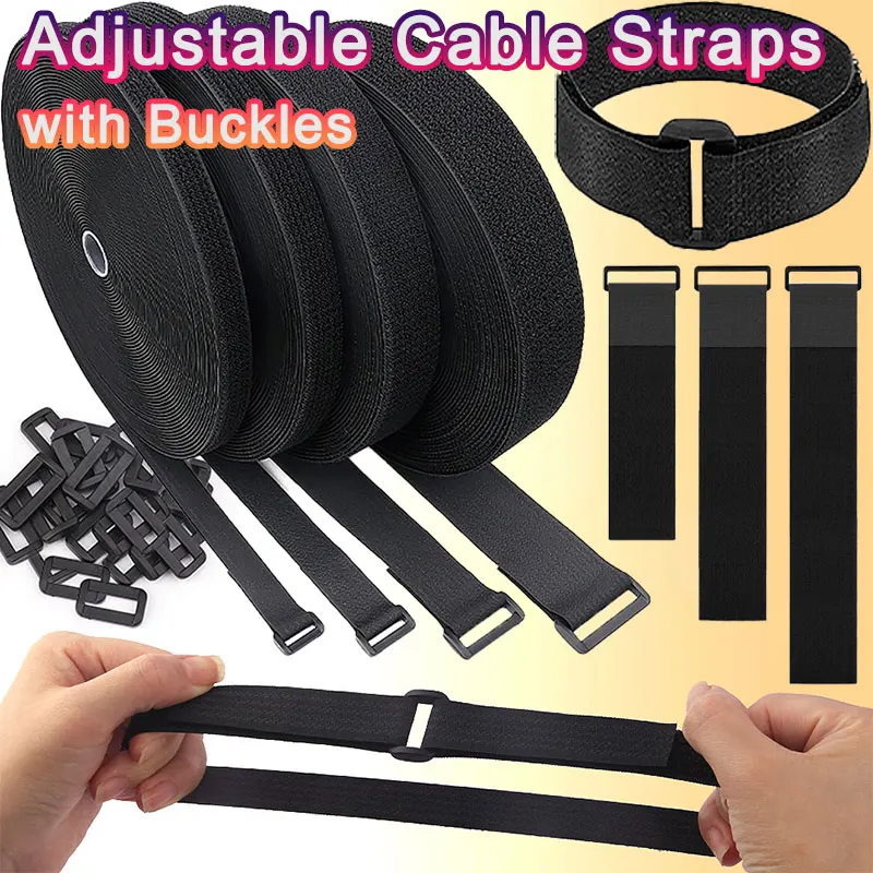 5/2/1Meter Reusable Fastener Hook and Loop Securing Straps with Buckles Adjustable Cable Straps Free Cut Length Nylon Cable Ties