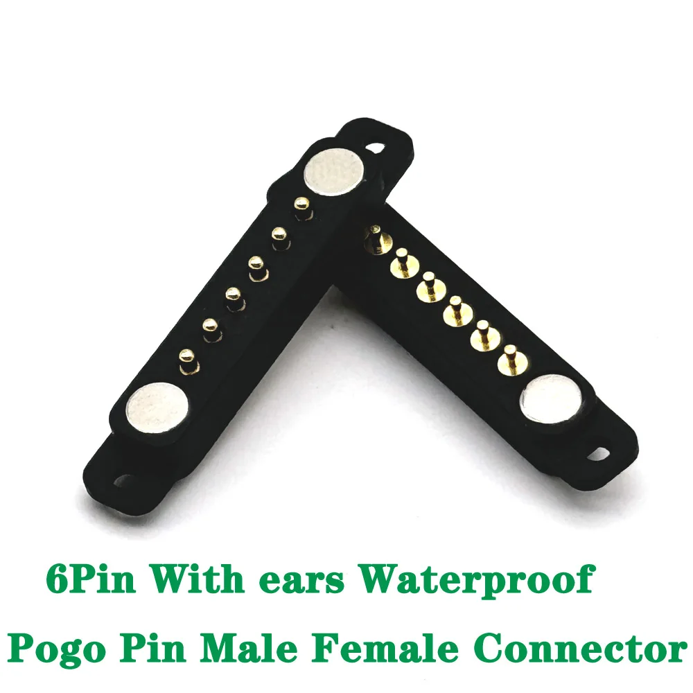 1sets 6Pin With ears Waterproof DC Magnetic Pogo Pin Connector 1A Pogopin Male Female Spring Loaded DC Power Socket 10P  Read more