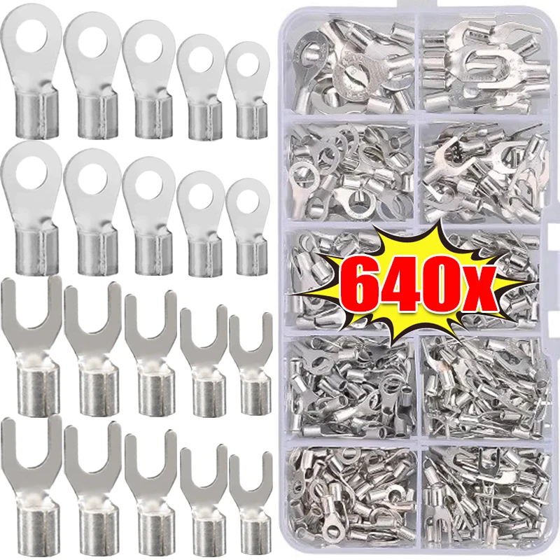 640/320pcs Non-Insulated Terminals Ring Fork U Shape Copper Terminals Electric Cable Wire Connector Crimp Spade Assortment Kit