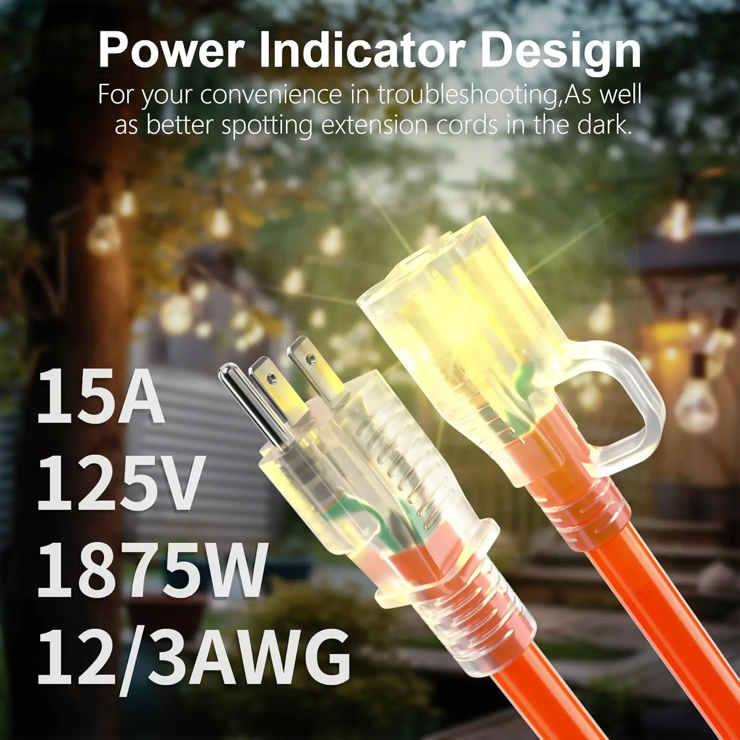 Furniture.100 ft 12/3 Gauge Heavy Duty Outdoor Extension Cord Waterproof with Lighted, Flexible Cold Weather 3 Prong Electric so