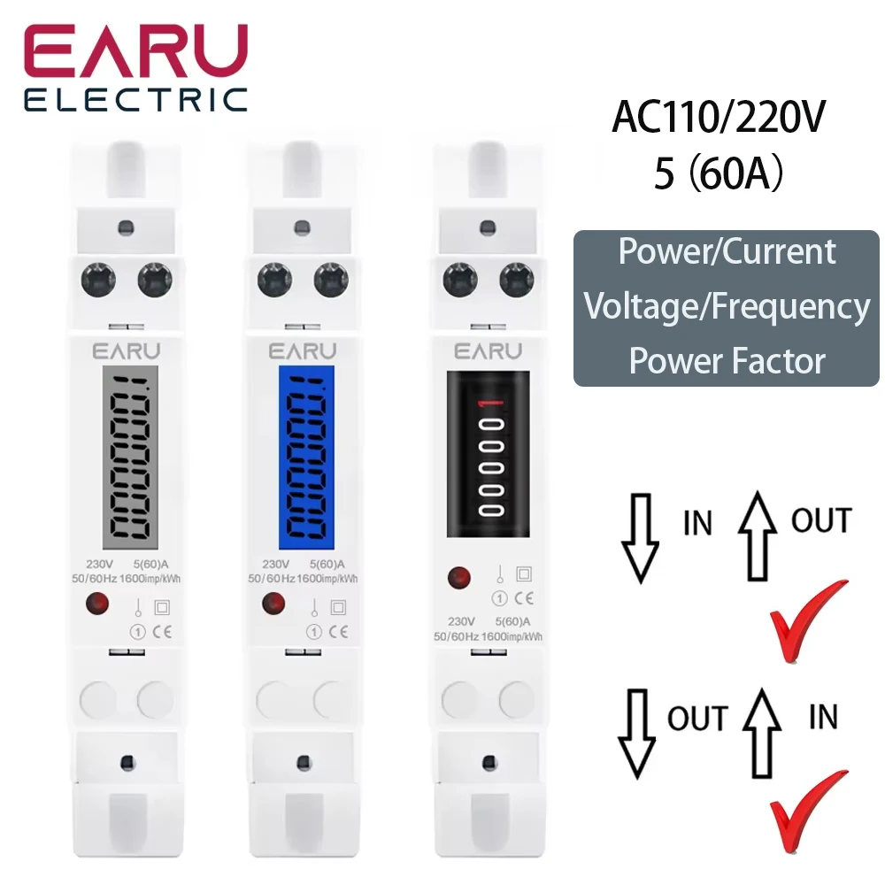 18mm Single Phase 1P 2 Wire Digital Wattmeter Power Consumption Analog Energy Meter kWh AC 230V 50Hz LCD Electric Din Rail Mount