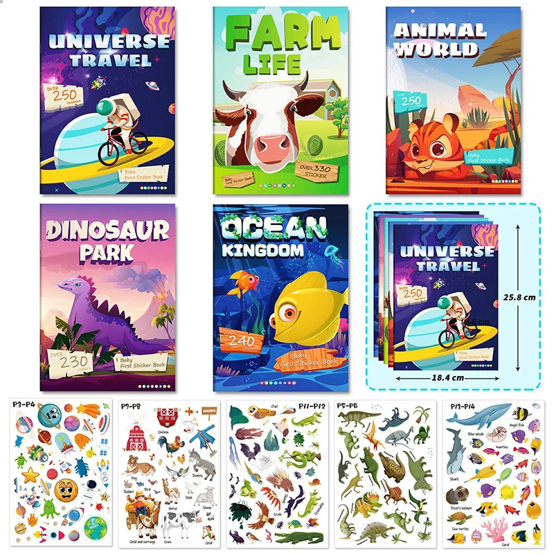 Children Scene Sticker Books Cartoon Animal Ocean Dinosaur DIY Handmade Stickers Quiet Book Learning Cognition Toys