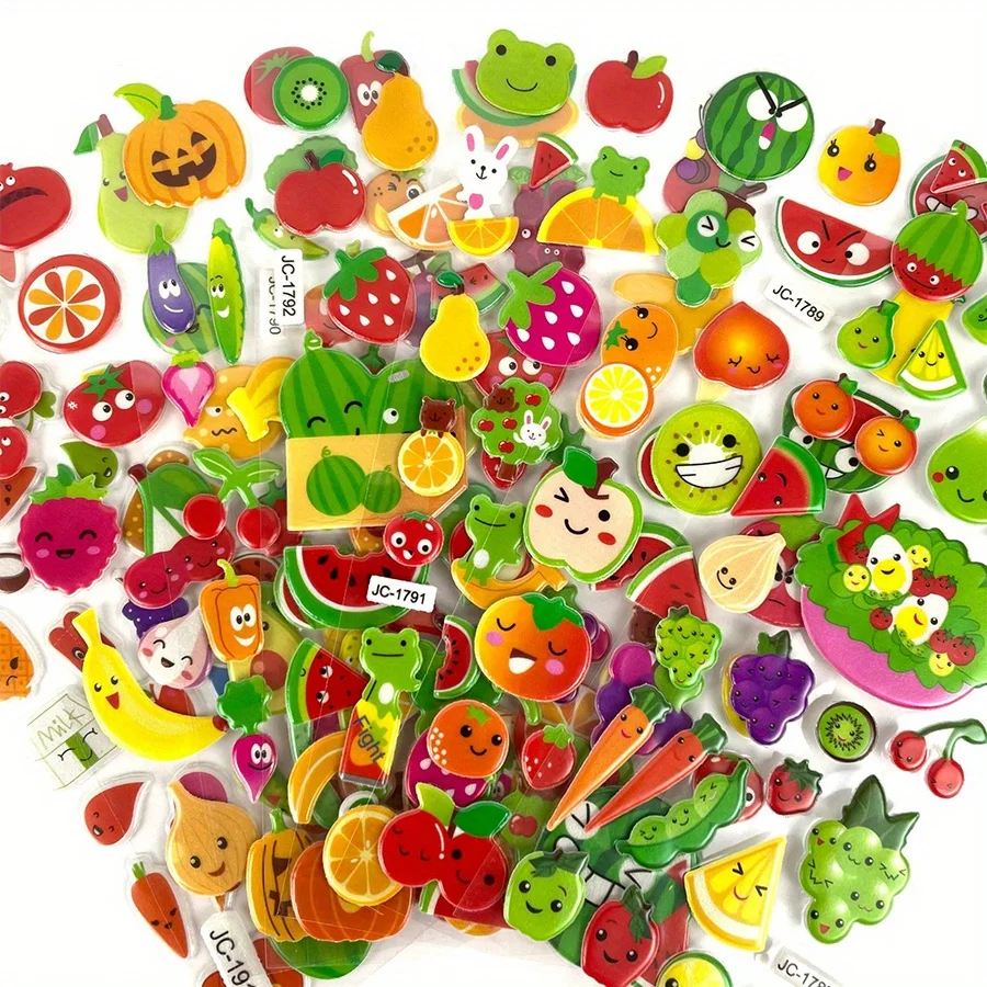 6 Sheets 3D Puffy Stickers Foam Vegetable Fruit Stickers Colored Sticker for Scrapbooking Teacher Reward Sticker DIY JXB