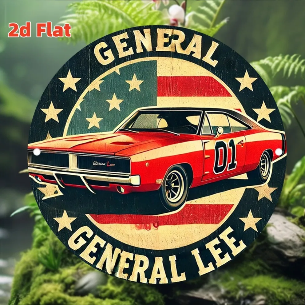 2D Flat Universal Racing Red Logo Metal Wall Decor – 7.8" Round Retro Wall Sticker–HD Printed, Suitable for Home, Office&Cafés