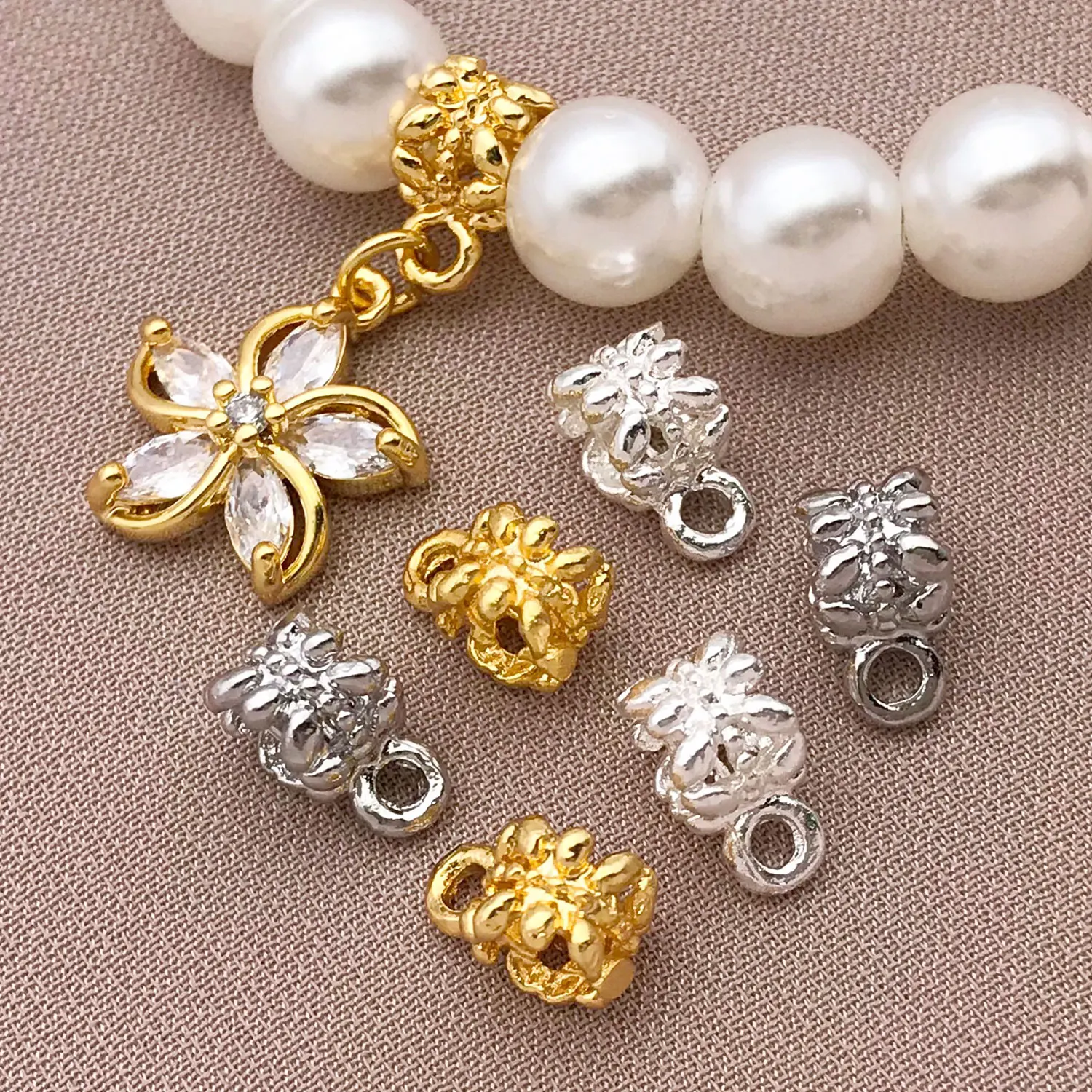 20pcs 18K Copper Plated True Golden Thick Silvery Platinum Batch Flower Connection Tube, DIY Bracelet Jewelry Making Accessories