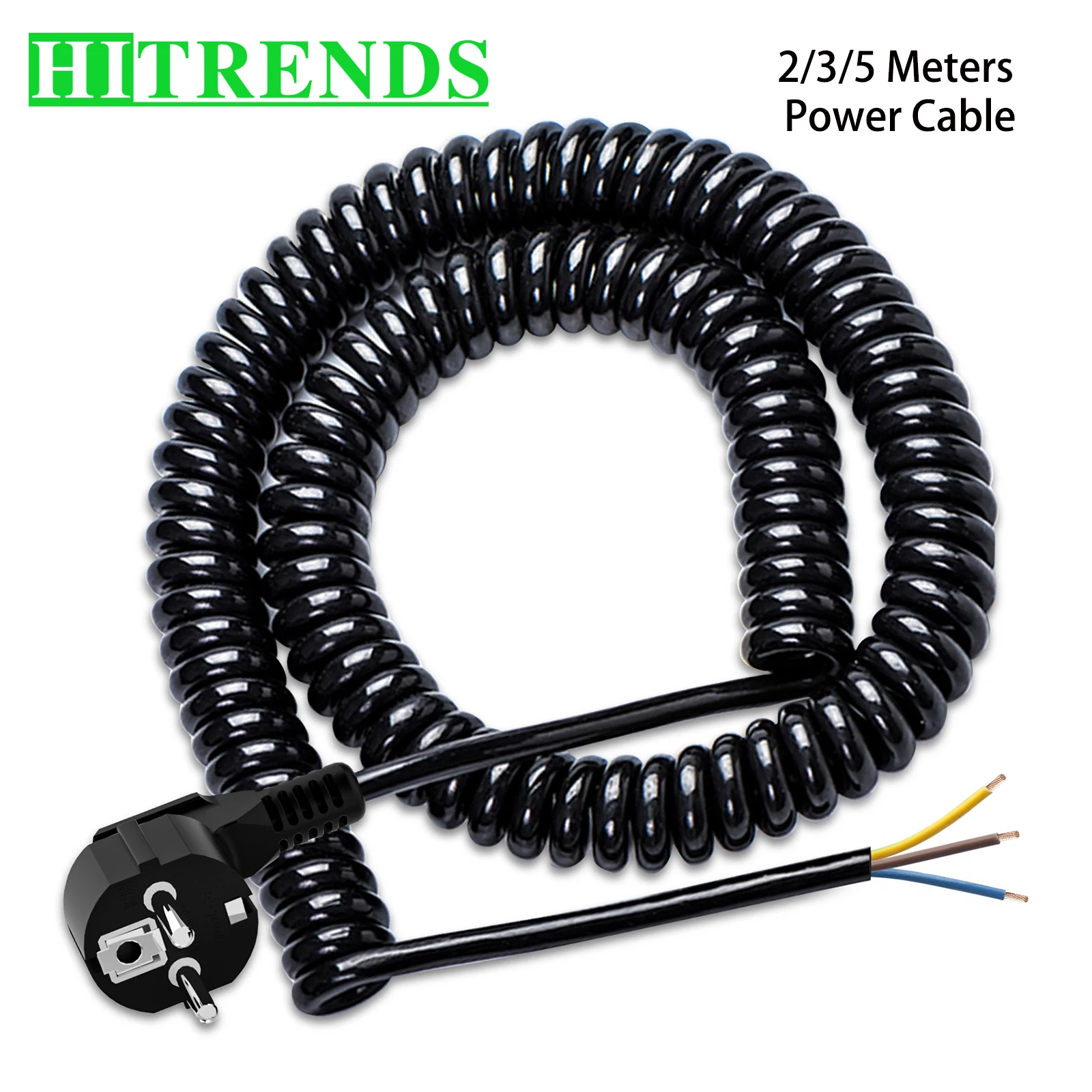 2/3/5M EU Replaceable coil cable Spiral extension cord with protective contact 250V male plug for extension cord black