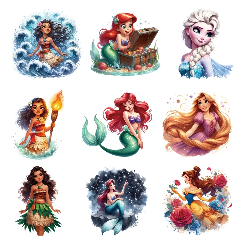 Hot Watercolor Princess Moana and Aurora Patches for clothes vinyl stickers thermo-stickers for Girls Ironing applications