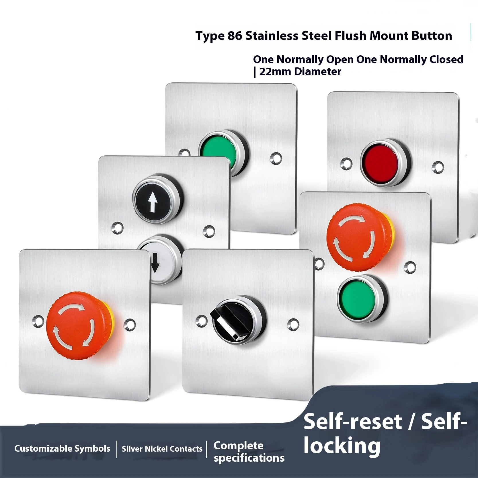 Stainless Steel 86 Type Wall Concealed Button Switch Control Box Fan Elevator Emergency Start and Stop Remote Control Panel