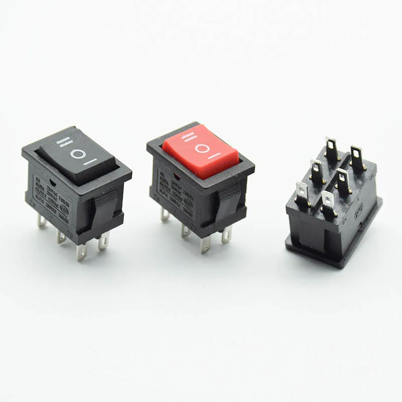 5pcs Rocker rocker switch power switch 6 foot 3 gear 6A 250V reverse button double pole double throw red black