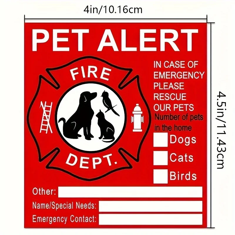 Pet Inside Sticker - 10 Pack Pet Alert Safety Fire Rescue Sticker Decal-Save Our Cat/Dog Pets in a Fire Emergency, Firefighters