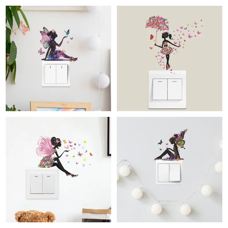 wall stickers switch loveliness Butterfly girl children's room living room porch home decoration mural Self-adhesive Wall Decals