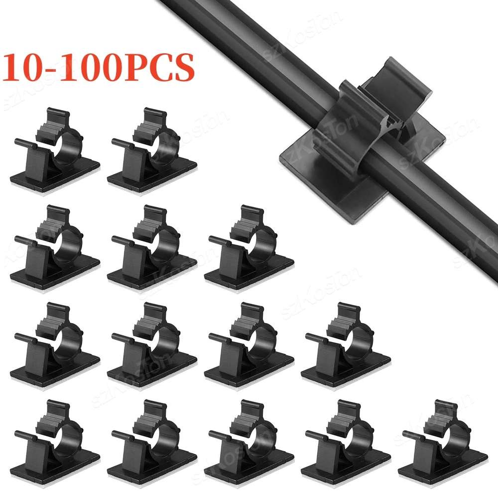 100/10PCS Cable Organizer Self Adhesive Cable Clips Table Cable Management Clamp Adjustable Cord Holder TV Charging Wire Winder