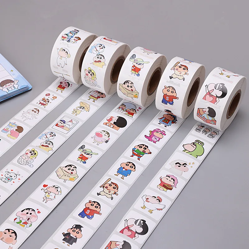 Crayon Shin-chan Square Seal Sticker 500PCS/roll Coated Paper Self-adhesive Cartoon Children's Sticker Gift