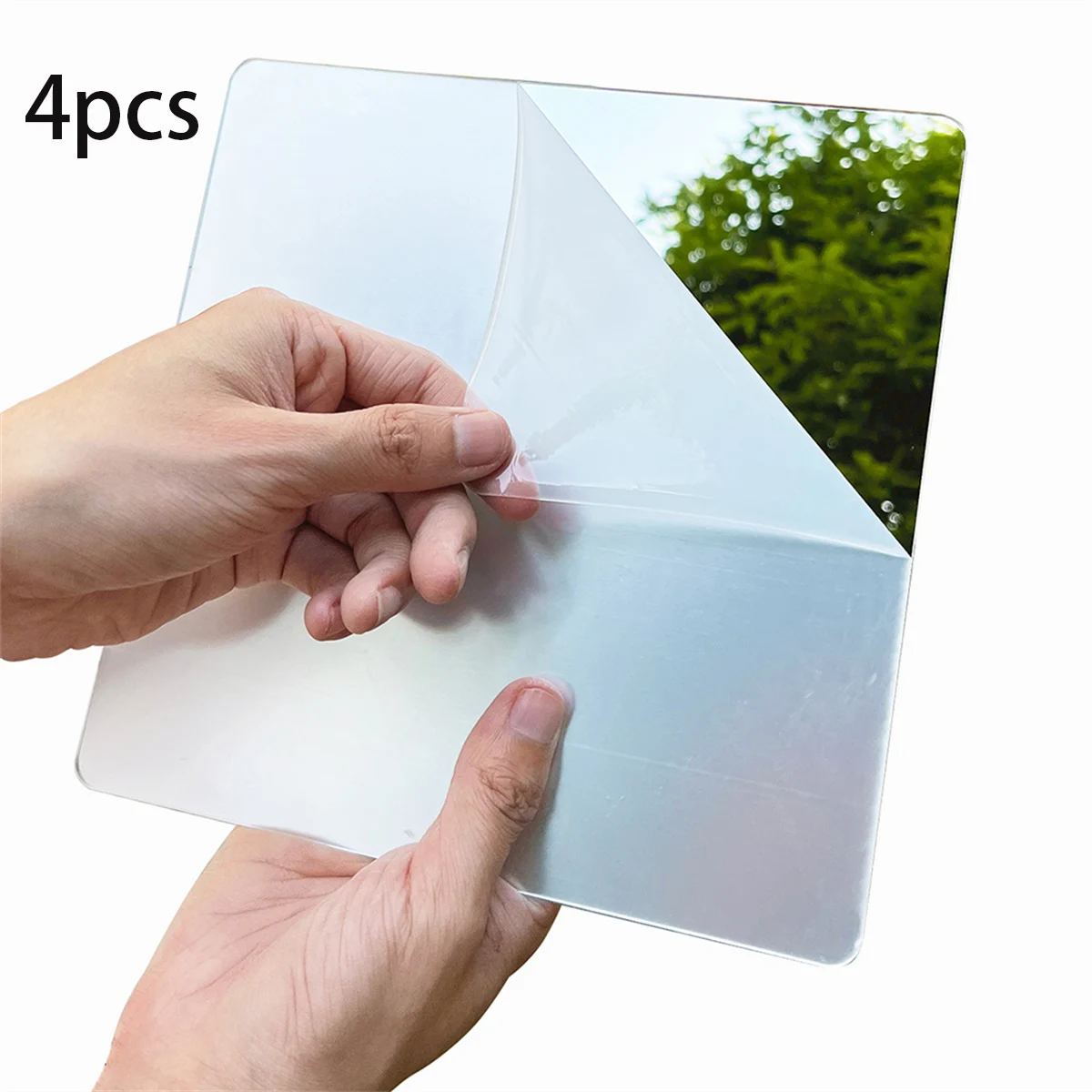 4pcs Square Mirror Wall Sticker Acrylic Home Decoration Stickers Self-adhesive Art Mural For Bathroom Bedroom Living Room