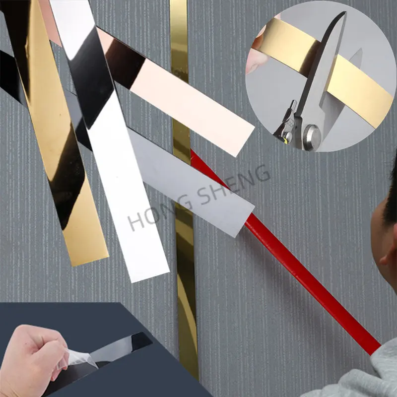3M Stainless Steel Flat Decorative Line Self-adhesive Furniture Wall Sticker for Wall Ceiling Edge Strip Living Room Decoration