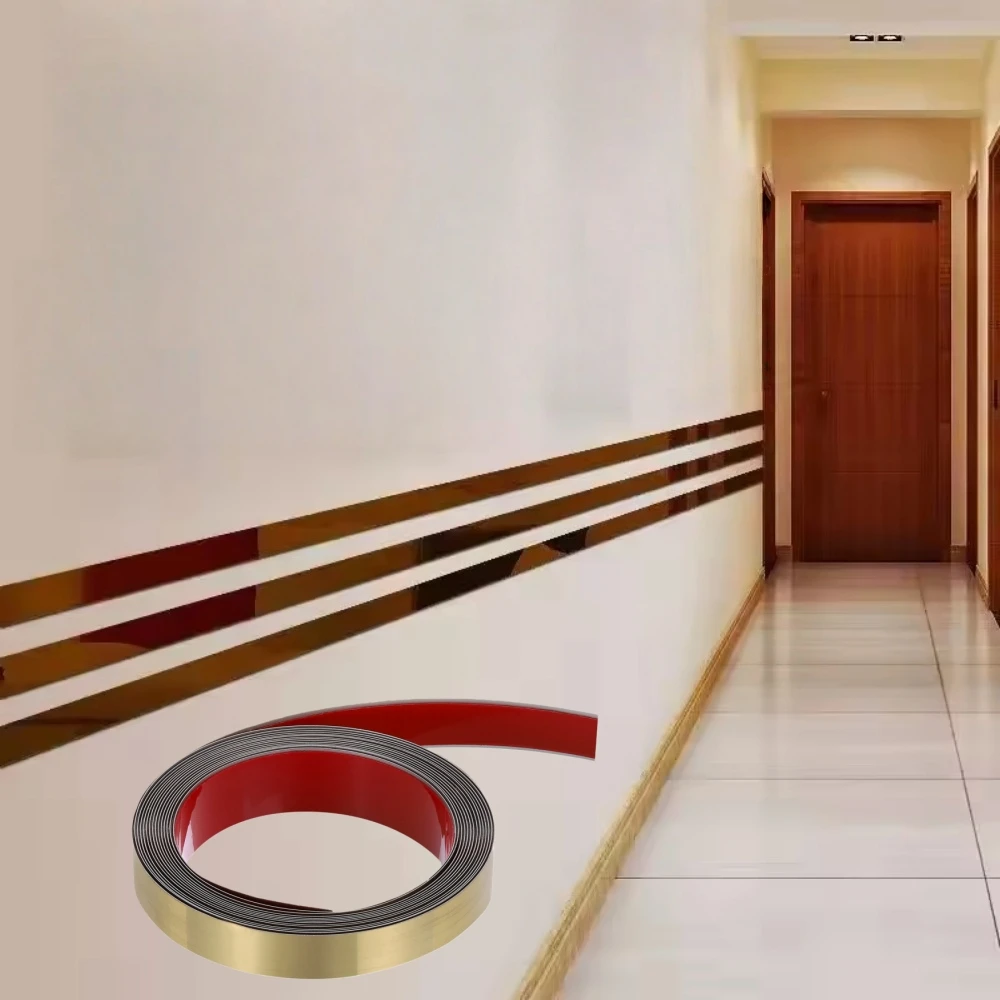 1pc 5m/196.85inMirror Self-adhesive Flat Decorative Lines Strip Stainless Steel Gold Wall Sticker Background Wall Ceiling