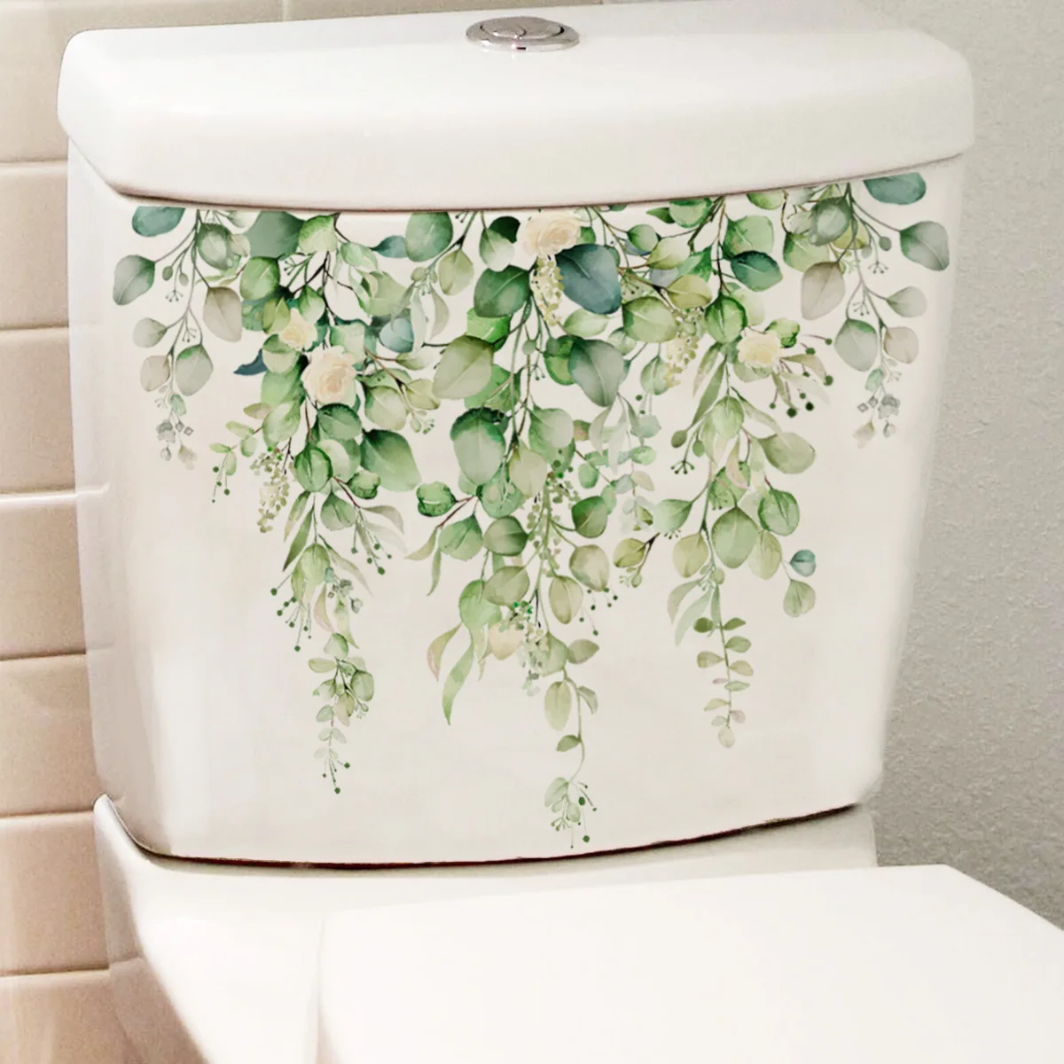 Green Leaves Flowers Wall Sticker Self Adhesive Bathroom WC Toilet Sticker Removeble Flower Home Decoration Decals