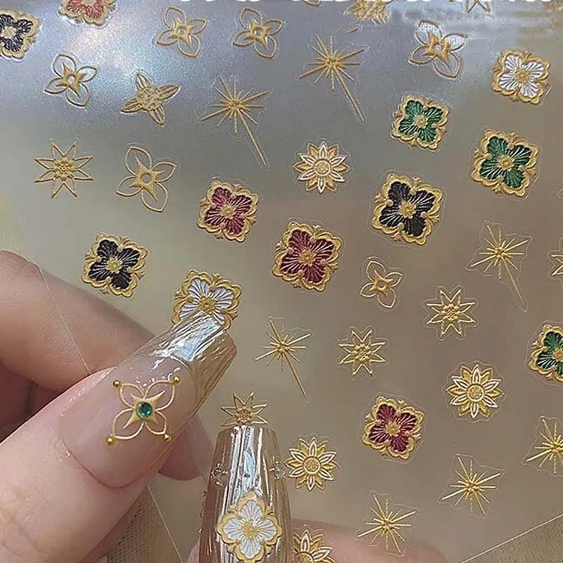 5D Nail Art Sticker Bohemian Retro Vintage Boho Self-Adhesive Decals Floral Pattern DIY Slider Decal Decoration Manicure
