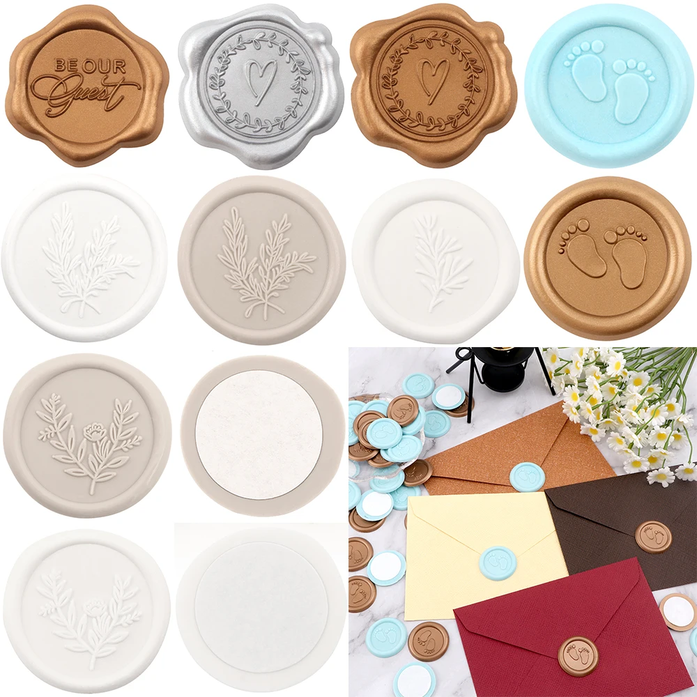 25pcs/set Wax Seal Stickers Embossed Heart Footprint Rosemary Branch Be Our Guest Pattern Self-adhesive Stickers for DIY Cards  Read more