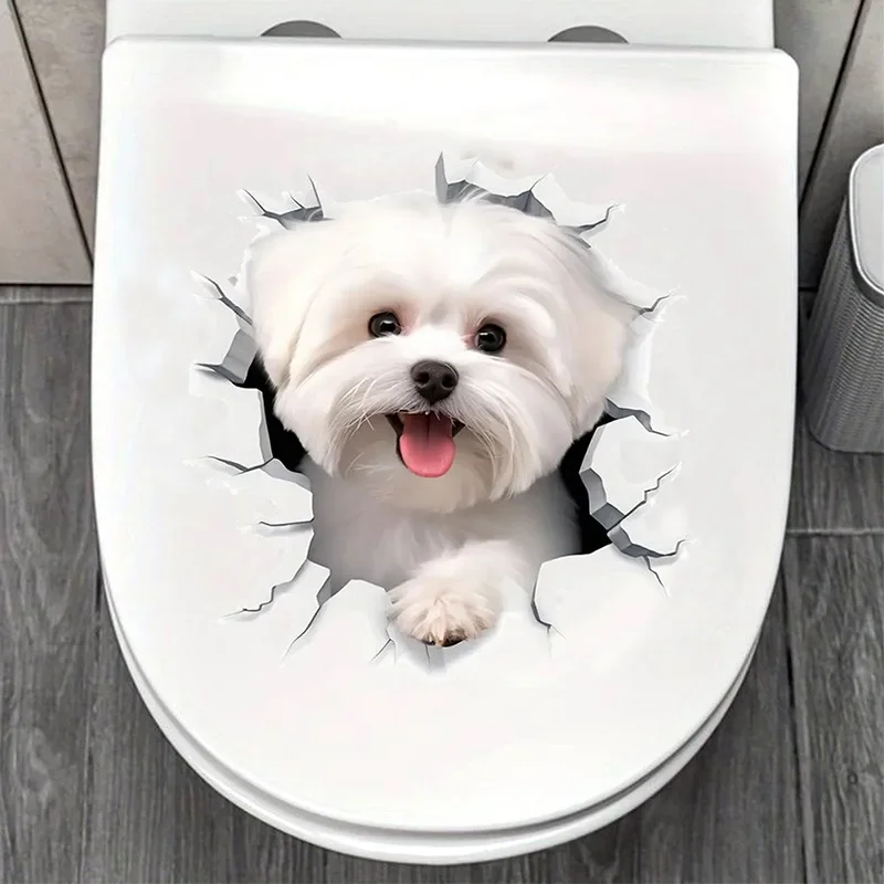 Cute 3D Cartoon Dog Toilet Stickers Decoration for Living Room, Bedroom, and Home Decor Flowers Wall Decals Self-Adhesive