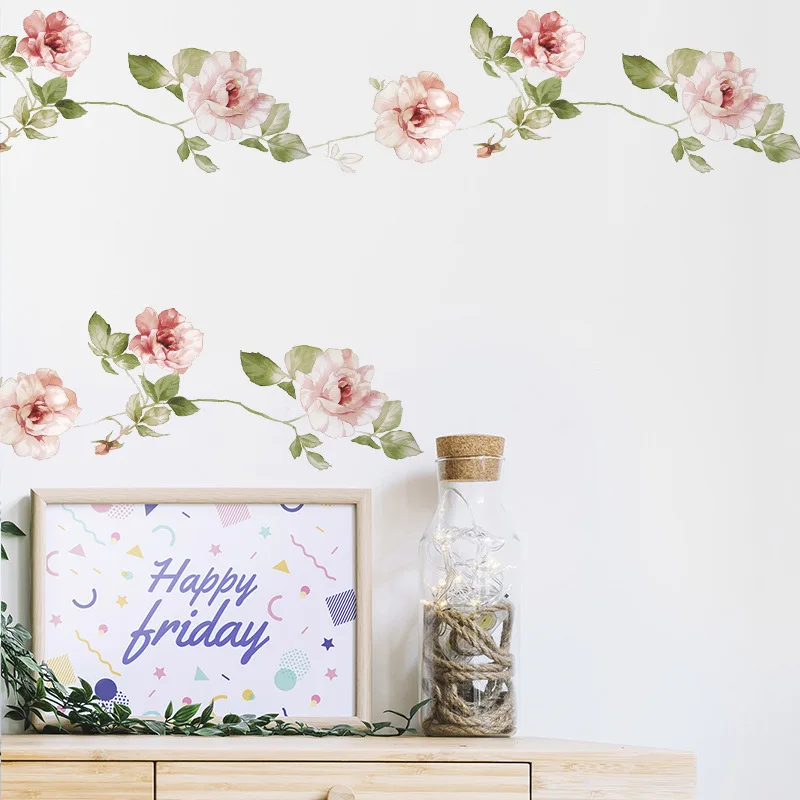 New Style Flowers Vine Wall Sticker Bedroom Home Decoration Living Room Skirting Removable Wallpaper Self-adhesive Stickers  Read more