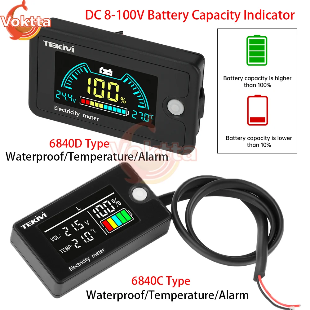 DC 8-100V LCD Digital Voltage Power Meter Ternary/Lithium iron/Acid Battery Capacity Indicator Voltmeter with Temperature Alarm