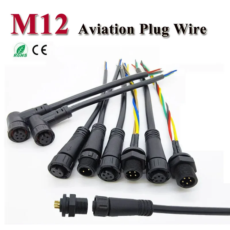Waterproof M12 2 3 4 5pin Plug Panel Socket Industrial Aviation Connectors 0.5/0.75/1.0 Square Male Female Quick Docking IP68  Read more