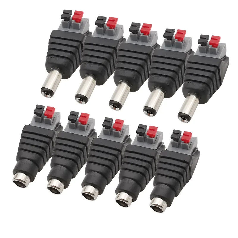 5.5x2.1mm DC Male Female Wire Connector 2.1*5.5mm No Screws DC Power Plug Jack Adapter for 3528/5050 LED Strip CCTV Camera