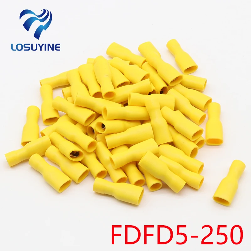 FDFD5-250 FDFD5.5-250 Female Insulated Electrical Crimp Terminal Connectors Cable Wire Connector 100PCS/Pack AWG 12-10 FDFD