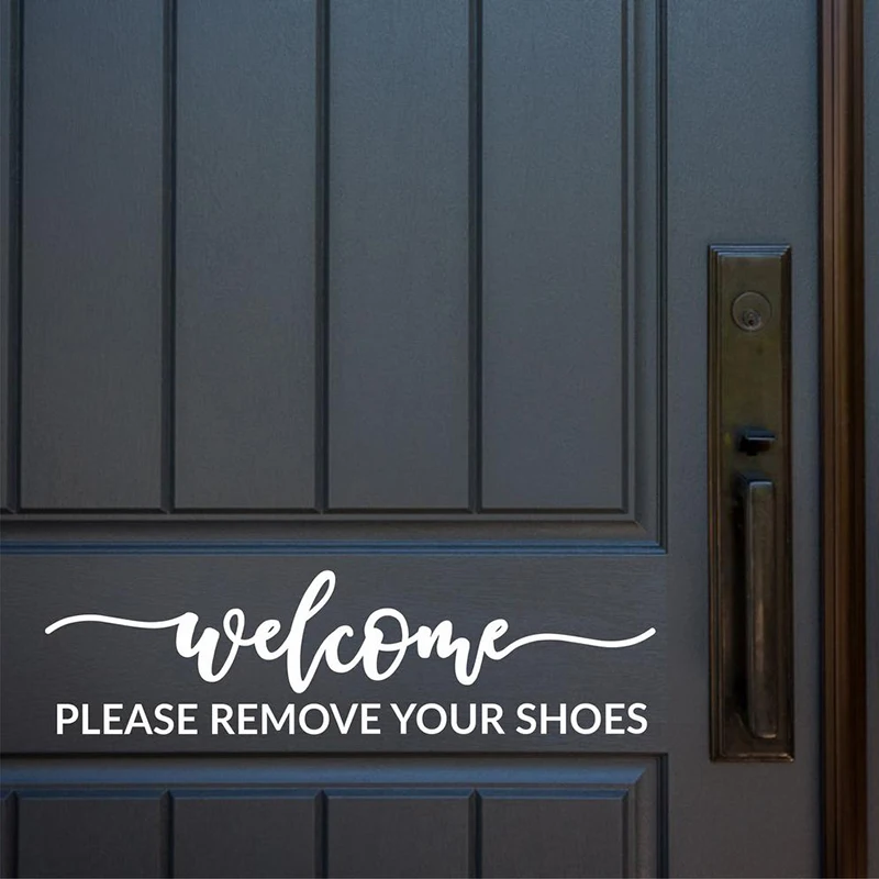 Welcome Please Remove Your Shoes Entryway Door Decal Sticker Mud Room Indoor Outdoor Friendly Household Welcome Sign Decor