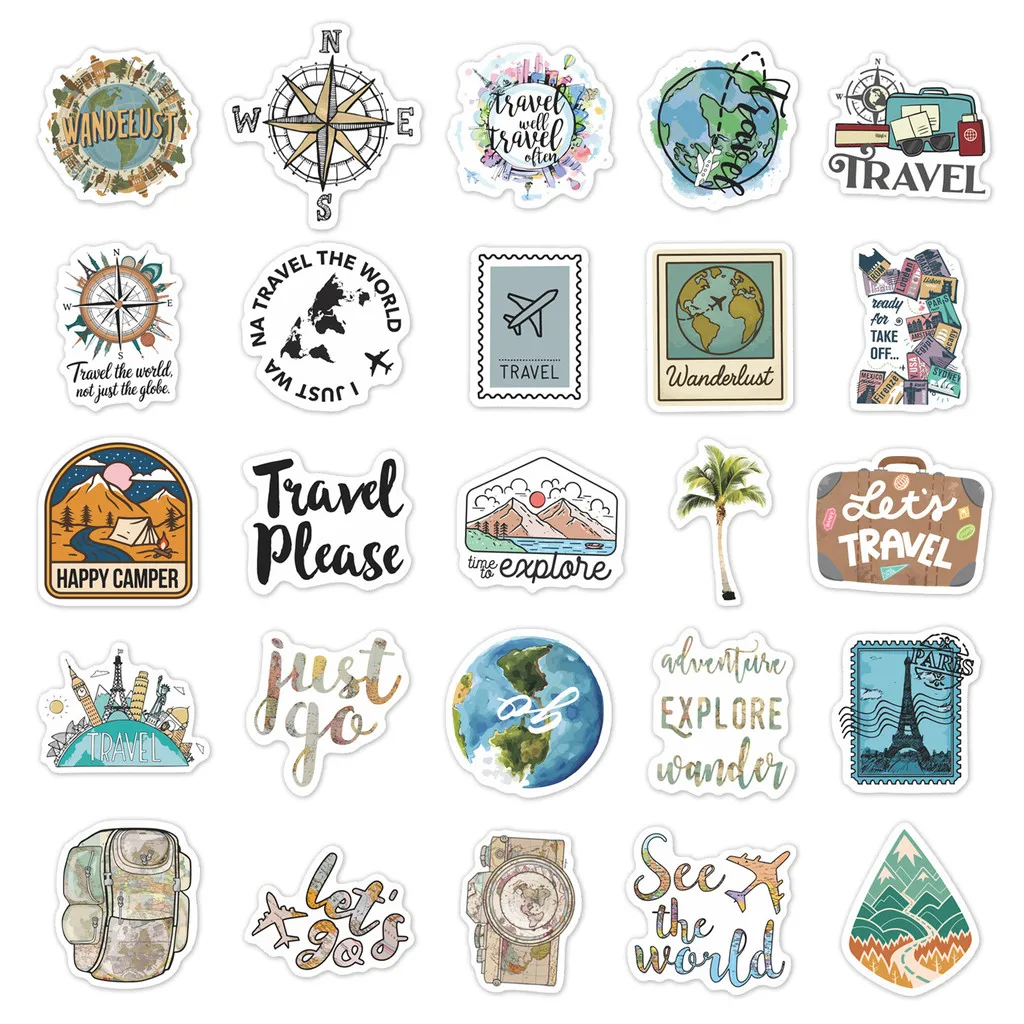 50-Piece Outdoor Travel Cartoon Graffiti Stickers Waterproof Decorative Decals for Phones Water Bottles RecordingYourLife Store