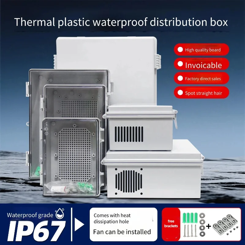 Ventilated Plastic Waterproof Distribution Box with Cooling Holes Rainproof Monitoring Junction Box Outdoor Electrical Case