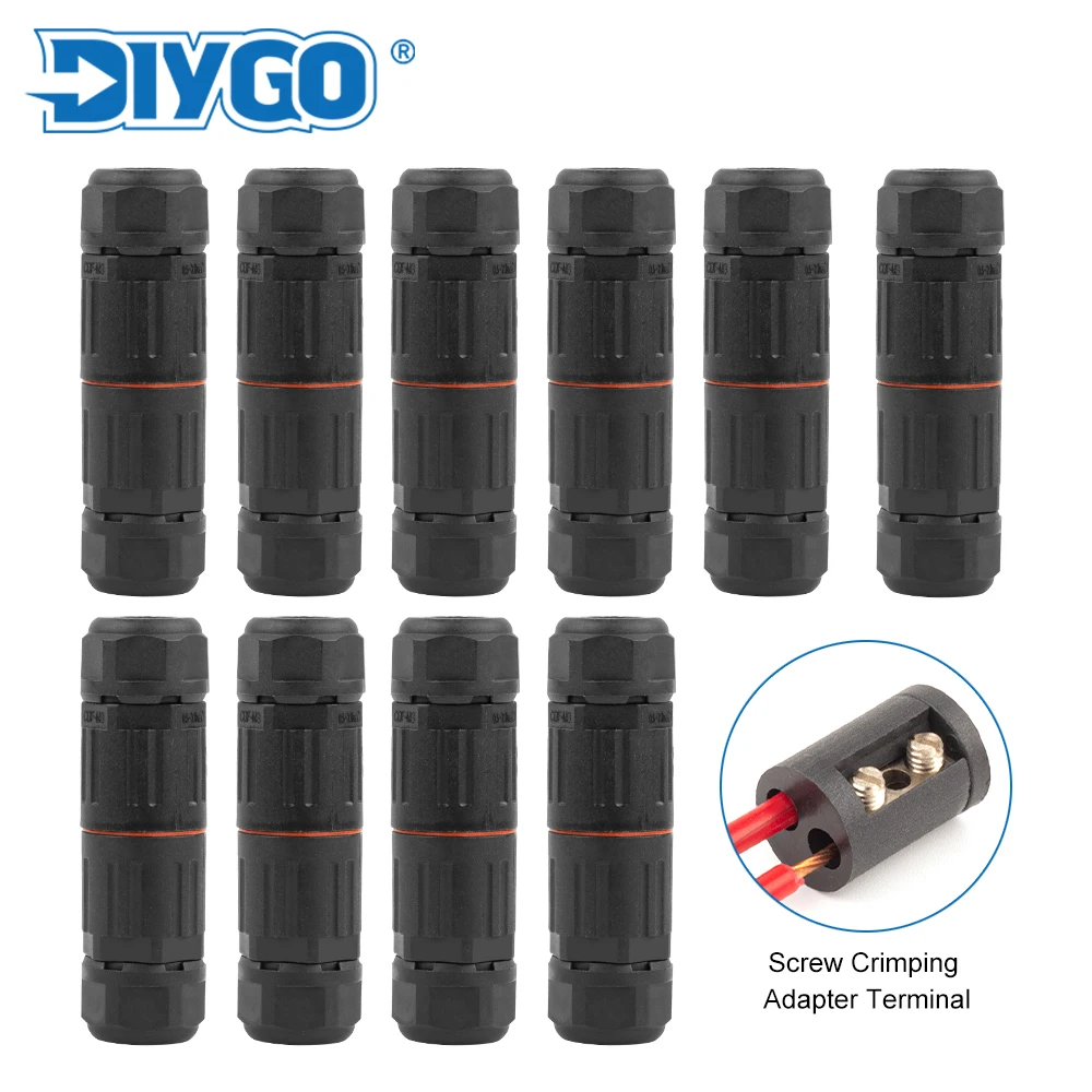 10PCS 2 Pin Screw Crimping Terminal Connector Straight Industrial Outdoor IP68 Waterproof insulation Electrical Wire Connectors