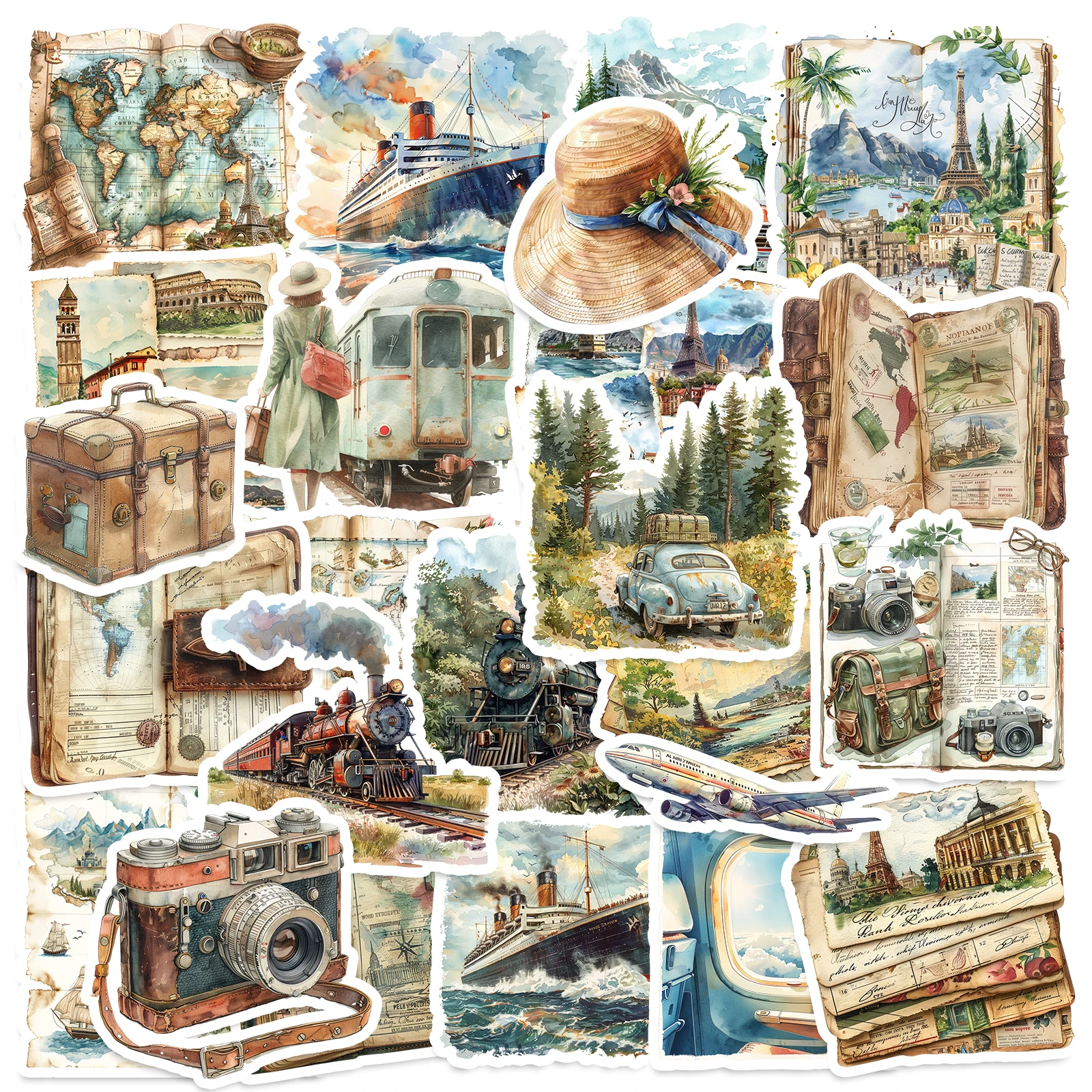 50 Pcs/Pack Outdoor Travel Stickers Vintage for Scrapbooking Junk Journal DIY Crafts Phone Laptop Water Bottle
