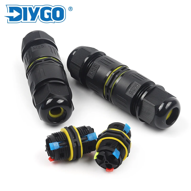 IP68 Waterproof Connector Assembly Type Wire And Cable Breakout Connector M25 3/4/5P Outdoor LED Lighting Sealed Connector 1PCS