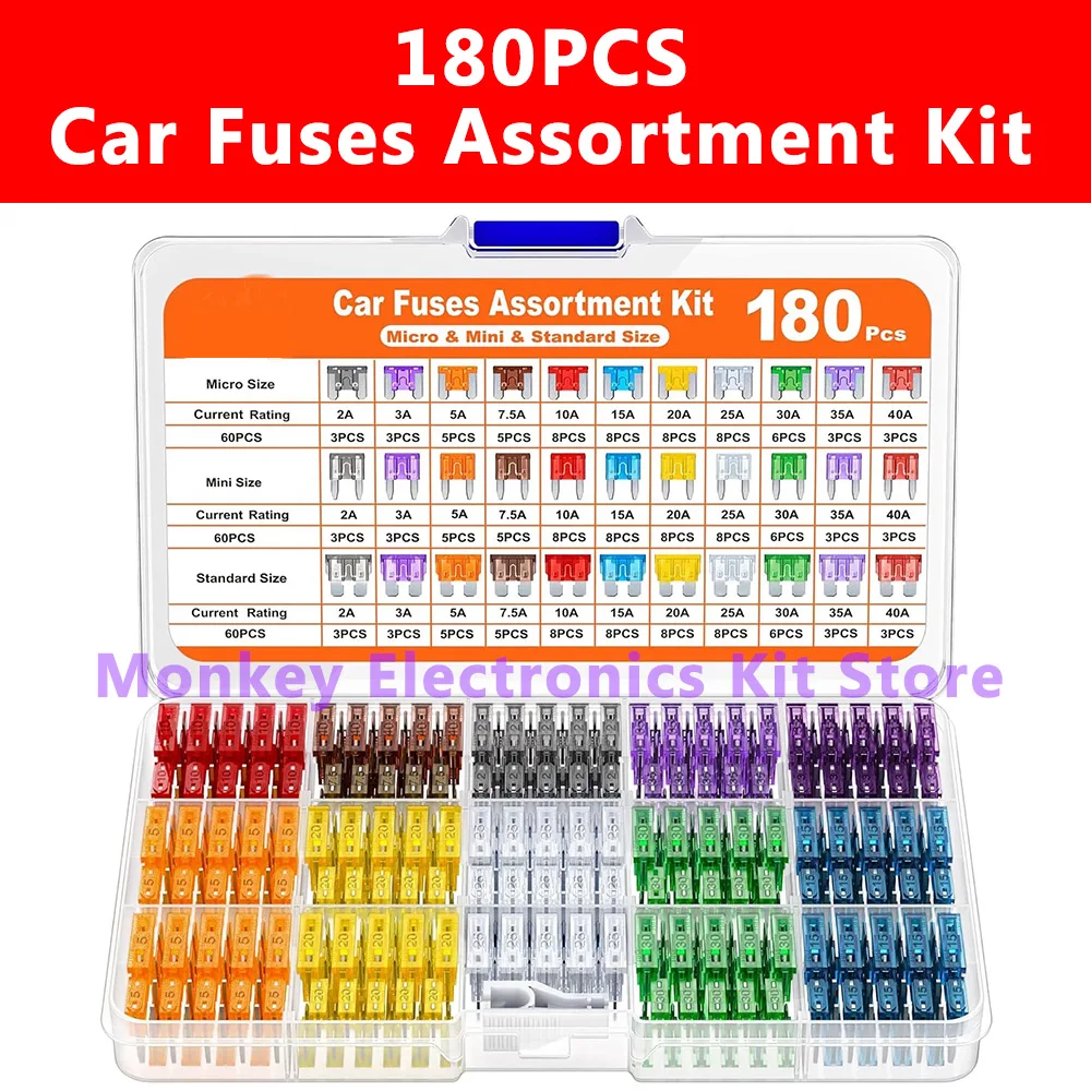 1 Set 180Pcs Car Fuses Assorted Kit, 60 Mini Blade Car Fuse +60 Standard Fuse Automotive +60 Micro Fuse + Fuse Puller  Read more