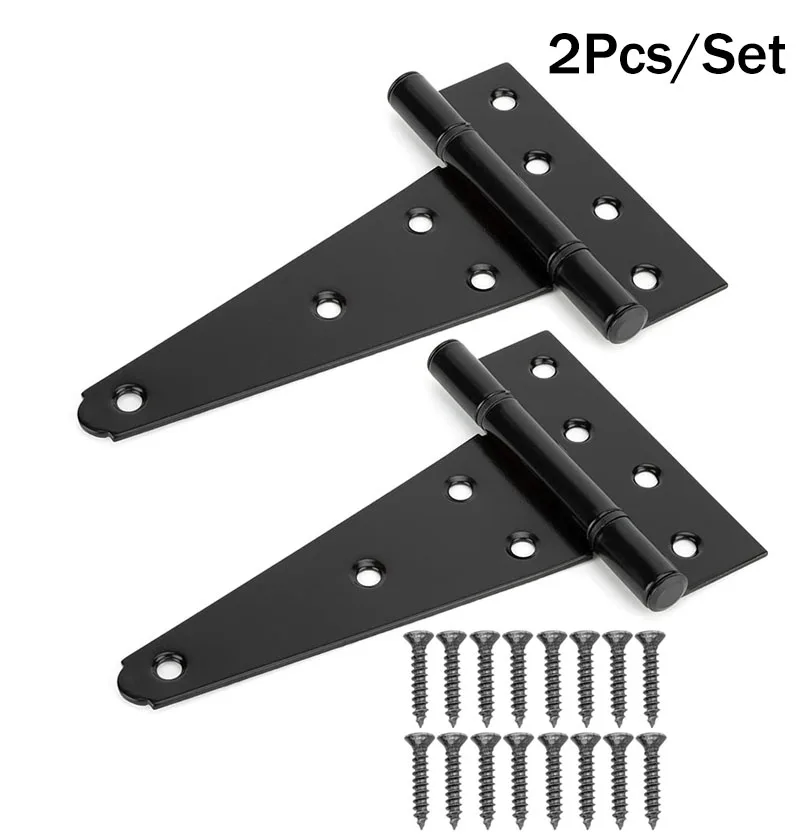 2Pcs Heavy Duty Shed Door Hinges Gate Strap Hinges Black Tee Hinge Wrought Hardware for Wooden Fences, Yard, Barn Door, Rustproof