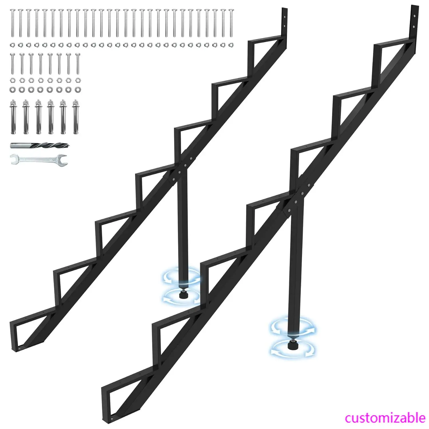 Steel Stair Step Riser 7-Step, Metal Stair Stringer with Reinforcing Support Legs, Heavy Duty Steel Stair Stringer for 57.5"