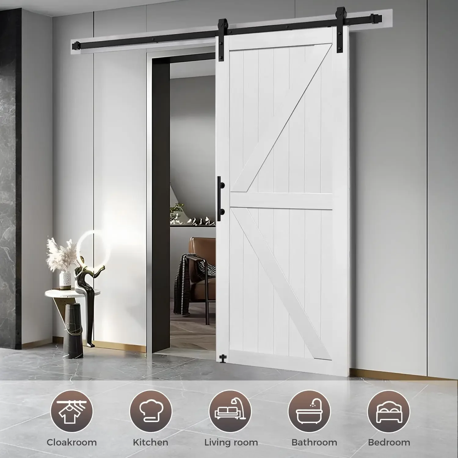 30inx 84in MDF Barn Door with 5FT Sliding Door Hardware Kit, 24in-54in Solid Barn Door Slab Covered with Water-Proof PVC Surface