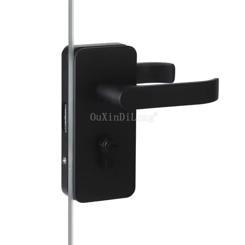 HOT Black 1PCS Zinc Alloy Glass Door Handle Lock Glass Partition Single Door Locks with Handle with Keys for 8~12mm Glass