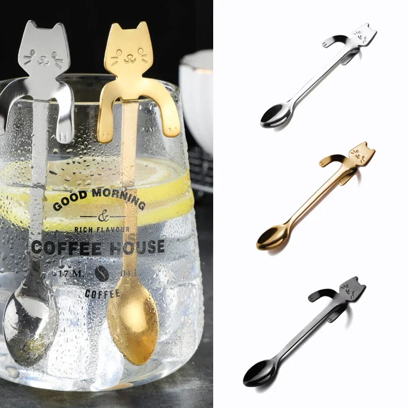 2024 New 1Pcs Stainless Steel Creative Cat Shaped Coffee Spoon Teaspoon Children Spoon Cake Stirring Sugar Soup Dessert  Read more